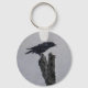 Ce corbeau était perché en hauteur sur un arbre mort par jour très venteux.