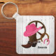 Illustration graphique de bottes de casquette et de cowgirl sur un porte - clé.
