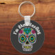 Magnifique porte-clés avec lettrage "I'm Skull Surfing" et crâne abstrait coloré et décoré pour la saison d'Halloween.