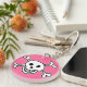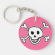 Porte-clés crâne et os croisés. Chaîne de clés comique pour enfants et adultes. Modèle de fille mignonne, design rose.