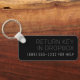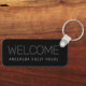 Modern black and white and gray minimalist personalized metal keychain for your guest room, rental house or studio space with custom text and room for a phone number for assistance.