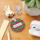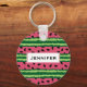 Un porte - clé avec un mignon motif de pastèque. Croûte verte en couches de rayures avec une couche de rayures roses avec des graines noires à l'intérieur. Amusement et design estival. Un rectangle superposé avec votre texte à l'intérieur.