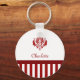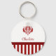 Porte - clé rouge et blanc préppant avec d'élégantes rayures décorées avec un motif damassé de style vintage. Personnalisez ce design classique de style ancien en ajoutant votre nom.