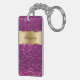 Porte - clé de monogramme avec le joli emblème imprimé de monogramme d'or que vous pouvez personnaliser avec n'importe quel nom, les initiales, ou le message et le bijou pourpre imprimé de diamant bling, avec l'arrière - plan imprimé par parties scintillantes pourpres simulé vous pouvez employer comme cadeau ou cadeau. Conçu comme porte - clés pour des femmes ou porte - clés pour des filles, dans une conception acrylique bilatérale d'amusement qui vous laisse porter vos clés dans le style.
