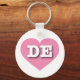 Ce porte - clé est doté d'un coeur rose vif contenant les lettres coques supérieures EN, gras, blanches, l'abréviation officielle du Delaware, le premier état.