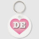 Ce porte - clé présente un coeur rose cool et calme avec un centre blanchi contenant les lettres coques supérieures blanches en gras DE, l'abréviation officielle du Delaware, le premier état.