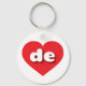 Ce porte - clé est doté d'un coeur rouge vif contenant les lettres de coque inférieures arrondies et audacieuses, une abréviation ludique de l'état du Delaware, le premier état.