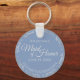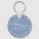 Ces beaux porte - clés sont conçus pour être donnés comme un cadeau ou une faveur de mariage à votre servante d'honneur. L'élégant design présente une frileuse bordure en faux feuille gris argenté avec du texte gris pâle sur un arrière - plan bleu périwinkle poussiéreux. Il y a de la place pour son nom, la date du mariage et le nom du couple. Bonne façon de la remercier d'avoir fait partie de votre journée spéciale!