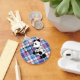 Caricature joyeuse et mignonne de Panda créée par Naomi Ochiai du Japon. Design Judo Panda pour les fans de Judo ! Il porte fièrement une ceinture noire. Arrière - plan plaid bleu. Vous pouvez customiser du texte !