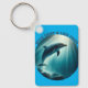 Un dauphin sous l'eau avec des rayons de soleil filtrant dans l'eau. Les mots "Plongez profondément, vivez libre" sont écrits au-dessus de l'image. Une chaîne de clé merveilleuse avec un message inspirant. Contient du contenu génératif.