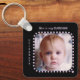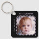 Porte - clé double face, idée cadeau de clé. Remplacez les deux photos / avant et arrière et ajoutez un nom. Arrière - plan noir, texte violet avec coeur d'amour.