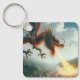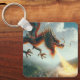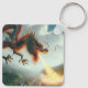 Un dragon à la chinoise plongeant du ciel en faisant feu sur un petit village. Par martinspixs.