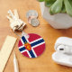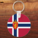 Drapeau stylisé de Norvège avec les armoiries superposées et le nom du pays au-dessus - en norvégien.