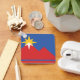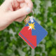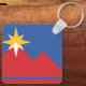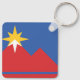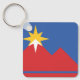 Porte - clé avec un design avec le drapeau de Pocatello, Idaho. Un drapeau bleu avec des montagnes rouges et une étoile jaune