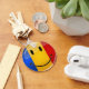 Montrez votre fierté nationale pour le beau pays de Roumanie avec ce rond drapeau roumain souriant.