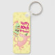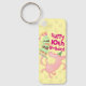 Un joyeux cochon sur un porte - clé en aluminium. Utilisez "Personnalisez ce modèle" et changez d'âge pour créer un cadeau unique et customisé ; les changements de texte sont reflétés de part et d'autre. Offrez un cadeau amusant assorti à une carte d'anniversaire, avec un cochon gracieux sous un gâteau de couche avec des éclats de glace verte et surmonté de bougies roses.