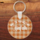 Funny rustique porte - clé de pays dispose d'un texte blanc "Attendez jusqu'à ce que vous rencontriez ma famille" et d'un arrière - plan vintage à damiers