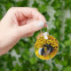 Un bourdon qui cherche du pollen dans une fleur de tournesol jaune est sur cette porte-clé.