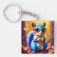 Porte-clés Écureuil bleu mignon avec lunettes