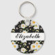 Porte-clés Élégant Monogramme noir et blanc Motif de margueri