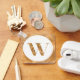 Élégant cadeau monogrammé dans les tons blanc et or. Pour personnaliser le monogramme d'or, cliquez sur "Customiser plus loin". Toutes les lettres sont dans un seul fichier qui doit être déplacé pour placer la bonne lettre au milieu du cercle. Cliquez ensuite sur "Terminé" et personnalisez le texte au dos comme d'habitude.