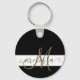 Porte-clés Élégant Noir Blanc Or Monogramme Nom du script