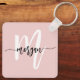 Porte-clés Élégant rose moderne Script Girly Monogramme Nom