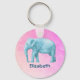Photo d'un éléphant bleu clair peint à la main, aquarelle. Cette image a les fleurs classiques de peinture aquarelle où la peinture se répand en motif aléatoire, une caractéristique qui rend les aquarelles si uniques. L'arrière - plan est également un dégradé de couleur rose pâle qui crée un agréable contraste. Personnalisez avec un nom.