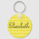Porte - clé mignon dans petit motif de coeurs jaunes avec le nom Elizabeth imprimé dessus.