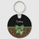 Restez à la mode avec cette élégante porte - clé empreinte de léopard en fourrure brune avec un élégant ruban vert olive attaché dans un arc chic. Personnalisez ce design poster de animal moderne et élégant en ajoutant votre nom. Image imprimée plate, pas de fourrure ou de ruban réel.