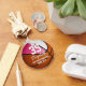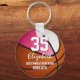 Ce porte - clé sur le thème du basket-ball personnalisé présente l'image réaliste d'un basketball qui a deux panneaux recolorés - un rose et un blanc - facilement customiser avec le nom du joueur et le numéro du maillot, plus le nom de l'école et le nom de la mascotte - par katz_d_zynes