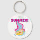 Une conception mignonne pour l'été, les caractéristiques une fille d'une chevelure blonde dans le maillot de bain et l'anneau descendant le texte de glissière d'eau et de roses indien et de bleu qui lit l'ÉTÉ ! T-shirts d'été, combinaisons, bavoirs, tasses, cartes, sacs, autocollants, souvenirs, coussins, et beaucoup plus.