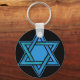 Un porte - clé avec une étoile de David en bleu et vert sur un arrière - plan noir, d'un dessin peint à la main par Judy Adamson.