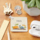 Un porte - clé au design mignon avec 4 dinosaures. 2 volent et 2 sont au sol. Créé avec des aquarelles.