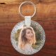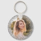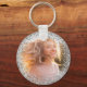 Create your own girly glam round key chain featuring a round faux silver grey glitter border.
