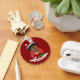 Porte - clé avec l'illustration d'une mignonne fille afro-américaine souriante avec une coiffure afro, la fille porte un costume de Santa Clause avec un casquette rouge et tient un cadeau ; dans un cercle rouge sur un arrière - plan rouge, avec un modèle texte modifiable pour votre nom ou message