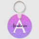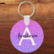 La parties scintillant violette à l'ombre de Girly et de glam scintille le nom monogramme et le porte - clé initial. Personnalisez avec votre nom personnalisé en noir et votre monogramme initial en blanc. Vous pouvez modifier la couleur du texte, le style et la taille de police à l'aide de l'option personnaliser.