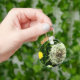 PLdesign photo de la grosse tête de pissenlit blanc et de la petite fleur de pissenlit jaune en arrière - plan sur herbe verte.