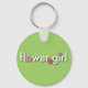 Votre mariage de rêve ne serait pas complet sans la petite fille de fleurs parfaite. Ce mignon Porte - clé Flower Girl présente des fleurs roses colorées avec du texte blanc sur un arrière - plan vert clair. Fait un cadeau parfait de fille de fleurs. Copyright © maboles