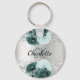 Un arrière - plan à l'aspect faux argenté décoré de fleurs vertes. Personnalisez et ajoutez vos initiales monographiques et votre prénom