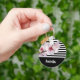 Classic noir et blanc rayures fines et fond noir pour votre nom. Décoré d'une grande fleurs de cerisier blanc et rose doux. Facile à utiliser modèle pour votre nom, grand script blanc de style manuscrit.