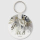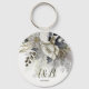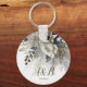 Porte-clés Fleurs de roses blanches dorées argentées pour la fête de mariage. Design unique, beau et élégant. Facile à personnaliser. Le style, la taille et les couleurs de la police peuvent être modifiés. Des articles assortis sont disponibles.