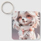 Porte-clés Fluffy Rose Et Blanc Chiot Personnalisé
