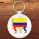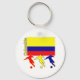 Trois joueurs de football jouent devant le drapeau colombien. Nom du pays La Colombie est sur le côté