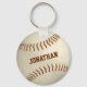 Cette chaîne de frappe de baseball sportive présente l'image réaliste d'une balle de baseball à l'aspect vintage avec le nom facilement personnalisable du joueur de baseball ou de softball - la balle et le nom sont orientés à un angle faible, et la couleur du texte correspond à la couture de la balle - par katz_d_zynes
