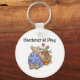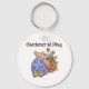 Un ours en peluche dans les salopettes bleues tend ses fleurs dans des pots en argile et le texte dit "Gardener at Play" sur les T-shirts, tasses, sacs fourre-tout, mousepads, autocollants, boutons et autres articles de jardinage.