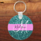 Porte-clés Glam Pink Turquoise Parties scintillant verte Nom