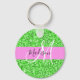 Glam et girly rose et parties scintillant verte scintillent le nom de monogramme blanc et le porte - clé initial. Votre nom personnalisé et votre monogramme sont écrits dans un élégant script écrit à la main avec un arrière - plan rose. Vous pouvez modifier la couleur du texte, le style et la taille de police à l'aide de l'option personnaliser. Un cadeau d'anniversaire ou de Noël parfait !