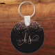 Glam Rose Gold Parties scintillant Elégant Porte - clé Monogram, Personnalisez facilement ce design porte - clé chic et branché avec une élégante parties scintillant brillante rose or sur un arrière - plan noir. Le design comprend votre monogramme manuscrit avec de jolis tourbillons et votre nom.