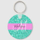 Glam et girly rose et turquoise parties scintillant scintille blanc nom monogramme et porte - clé initial. Votre nom personnalisé et votre monogramme sont écrits dans un élégant script écrit à la main avec un arrière - plan rose. Vous pouvez modifier la couleur du texte, le style et la taille de police à l'aide de l'option personnaliser. Un cadeau d'anniversaire ou de Noël parfait !